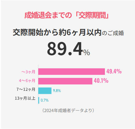 結婚相談所で成婚した6割の方が入会から1年未満にお相手を見つけて結婚を決めているってご存じですか?