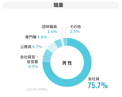 A:ご紹介可能人数約65000人(2025年2月現在・提携を含む合算数)結婚を真剣に考え、独身証明書など各種必要書類を提出された方だから安心